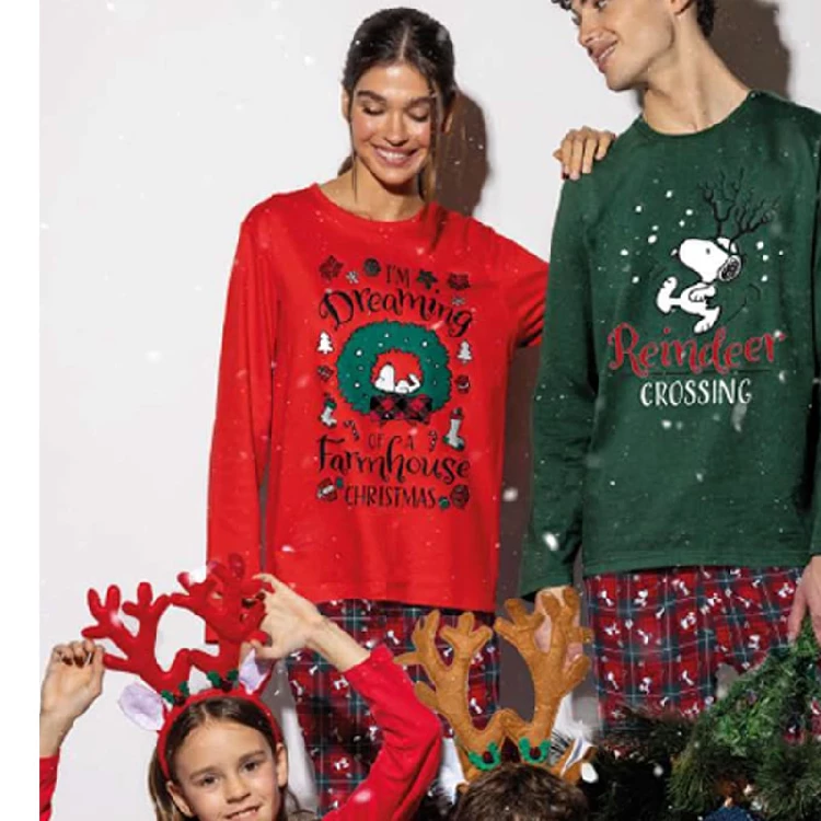 Pijama mujer Snoopy 63344 De punto NavidadCamiseta de manga larga y cuello redondo con estampado en el pecho y parche bordado.Pantalón largo estampado completo.Presentación: Packaging personalizado navideñoColor: RojoTallas: S, M, L, XL y XXLComposición: 100% AlgodónCombinan: 63344, 63356, 63806 y 63330