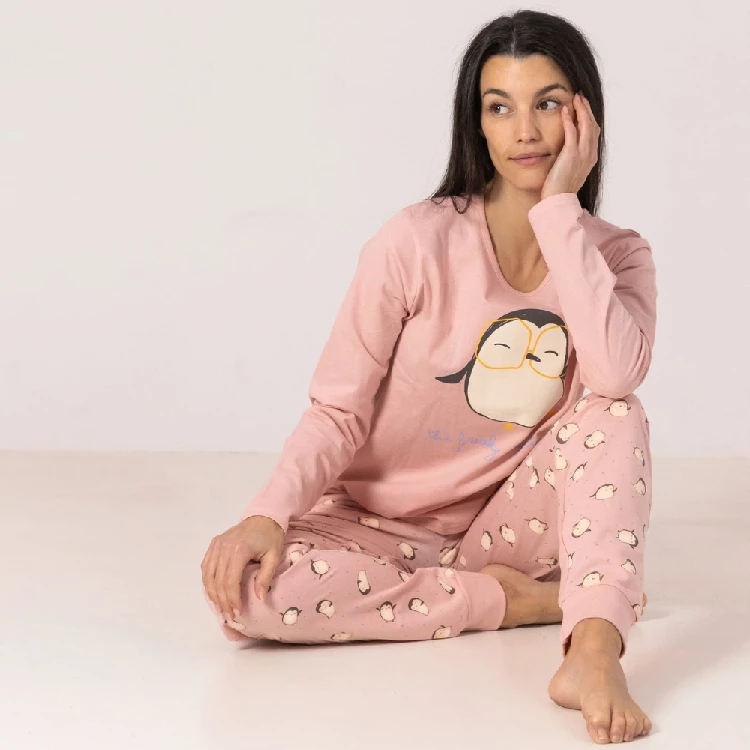 Pijama mujer Waterlemon 7921_1 De PuntoCamiseta de manga larga y cuello redondo con estampado completo y bordado en el pecho.Pantalón largo estampado combinado y con puño.Presentación: Caja individualColor: ÚnicoTallas: S, M, L, XL y XXLComposición: 60% Algodón y 40% poliéstercombina con el 7921