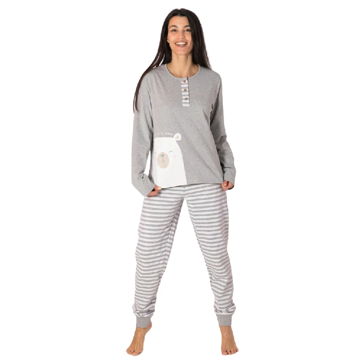 Pijama mujer Waterlemon 7926 De PuntoCamiseta de manga larga y cuello abotonado con estampado de un oso.Pantalón largo estampado completo con puño.Presentación: Caja individualColor: ÚnicoTallas: S, M, L, XL y XXLComposición: 60% Algodón y 40% poliéster