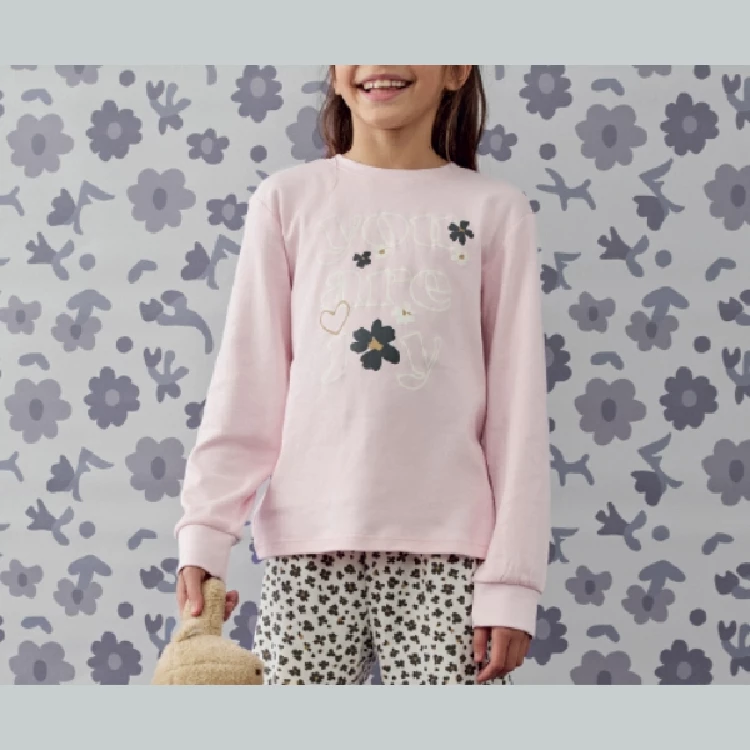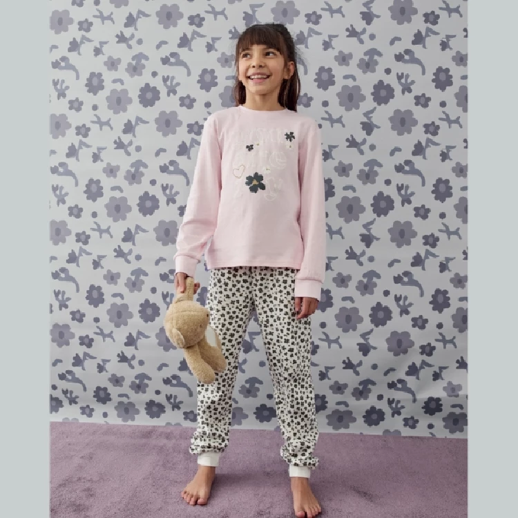 Pijama niña Tobogan 25208204 InterlockCamiseta de manga larga y cuello redondo con estampado en el pecho. Manga con puño.Pantalón largo estampado completo con puño.Presentación: Caja individual de la marcaColor: UnicoTallas: 8, 10, 12, 14 y 16Composición: 100% Algodón