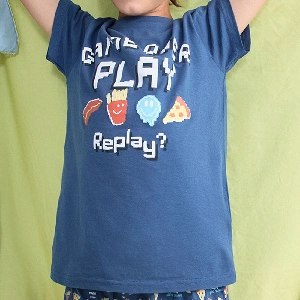 Pijama niño Tobogan 26117605Camiseta de manga corta y cuello redondo con estampado de comida.Pantalón corto estampado completo.Presentación: Caja individualColor: AzulTallas: 18 y 20Composición: 100% Algodón
