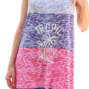 Playera mujer Muslher 267003Modelo por las rodillas, de tirante fino y estampado.Presentación: Caja individualColor: ÚnicoTallas: S, M, L, XL, XXL y 3XLComposición: 95% Viscosa y 5% elastómero