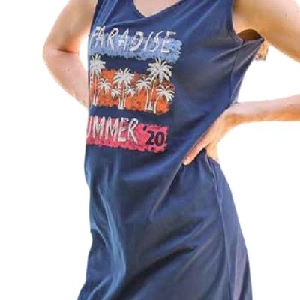 Playera mujer Muslher 267006Modelo encima de las rodillas, de tirante ancho y estampadoPresentación: Caja individualColor: ÚnicoTallas: S, M, L, XL, XXL y 3XLComposición: 50% Algodón y 50% poliéster