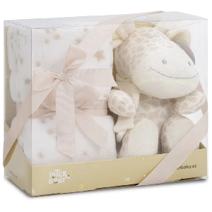 Set peluche bebe Interbaby PE023 JirafaEl conjunto contiene una manta con estrellas y un peluche de jirafa hecho de algodón.Presentación: Caja de cartón y plásticoColor: Azul, Beig y RosaTallas: Único (Manta de 80x100 cm + peluche de 29 cm)Composición: Algodón y poliéster