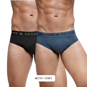 Slip hombre Don Algodón PS728 Pack de 2Modelo de algodón adaptable con goma vista ancha, estampado completo en uno de los 2 modelos y bordado de la licencia en la goma.Artículo de excelente calidad, fabricado con el mejor algodón.Los diseños de nuestra ropa interior son modelos de alta calidad que proporcionan una suavidad y una comodidad excepcionales.Presentación: Pack de 2 unidades, uno estampado y el otro básicoColor: Verde/Marino, Negro/Verde y Marino/NegroTallas: S, M, L, XL y XXLComposición: 93% Algodón y 7% elastanoCUIDADO:Se recomienda seguir las instrucciones de lavado que proporciona el fabricante.