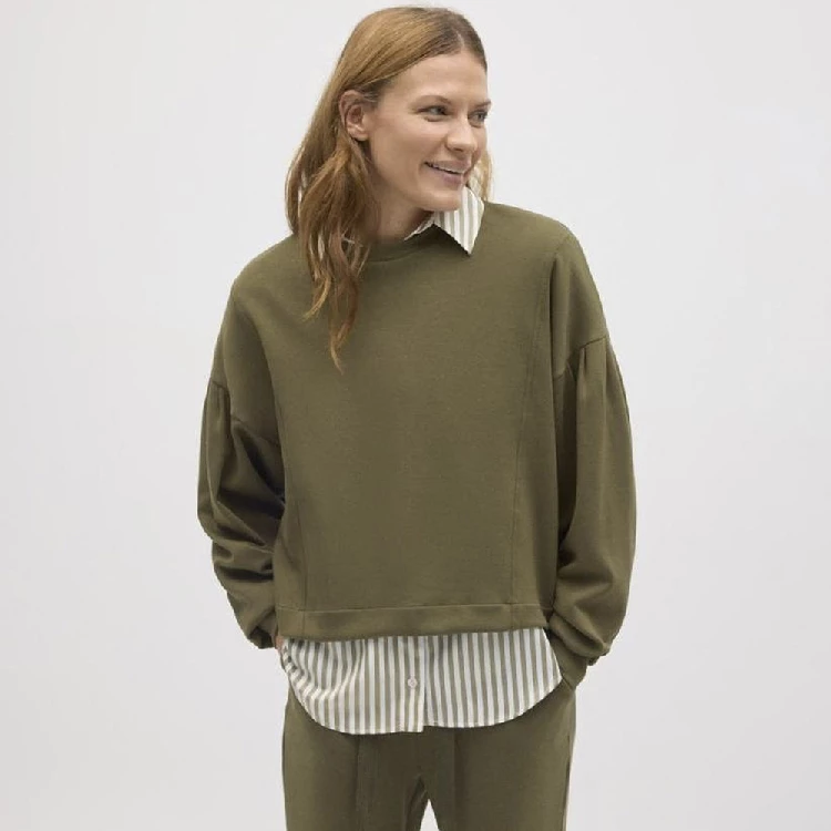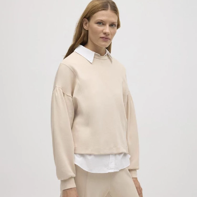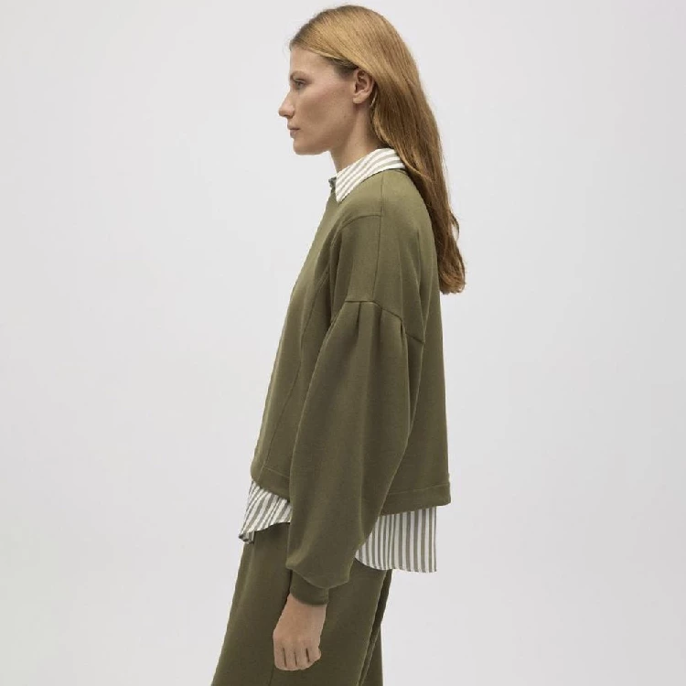 Sudadera mujer Ysabel Mora 70673 Manga largaModelo de tejido elástico con el detalle de las mangas abullonadas.Presentación: Caja individualColor: Arena, Negro y OlivaTallas: S, M, L y XLComposición: 50% Poliéster, 44% Viscosa y 6% ElastanoCombinan con: Pantalón YM70676 y Pantalón YM70685