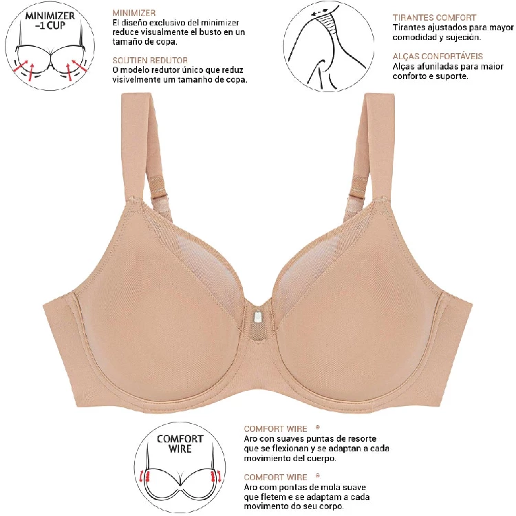 Sujetador mujer Triumph True Shape Sensation W01 Copa CEste sujetador reductor está diseñado para ofrecer la máxima sujeción en un diseño sin aros, gracias a la nueva tecnología de copas que incorpora. Un diseño ligero y con sujeción. Brinda una cobertura completa y un look natural.Sujetador reductor sin relleno ni arosDoble capa transpirable con forro de la copa en tejido supersuaveEfecto alisador integral cómodoRealza la forma natural del pecho, en un diseño sin apenas costurasTirantes acolchados y ajustados con bordes lisosDiseñado para esas ocasiones en las que te apetece llevar una blusa con total confianza y seguridad.Presentación: Caja individual de la marcaColor: CarneTallas: 95, 100, 105 y 110Composición: 70% Poliamida, 29% Elastano y 1% PoliésterCUIDADO:Lavar únicamente a manoNo blanquearNo secar en secadoraNo plancharNo limpiar en seco