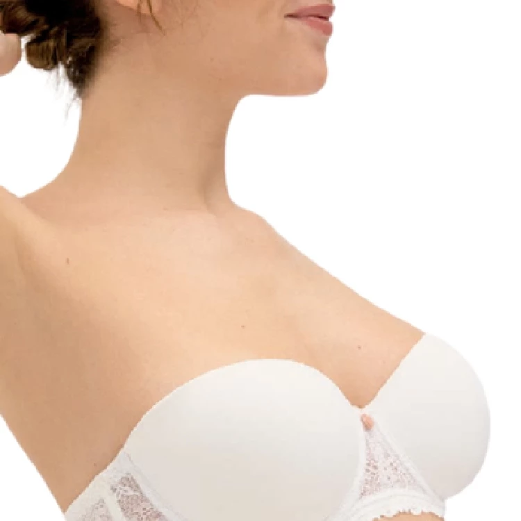Sujetador mujer Ysabel Mora 10174 Copa B NoviaModelo en copa B para novias, bandeau, con aro y relleno.Tiene un bonito encaje y tirantes extraíbles.Colección BridalPresentación: Pack individualColor: PerlaTallas: 85, 90, 95 y 100Composición: 90% Poliamida y 10% Elastano