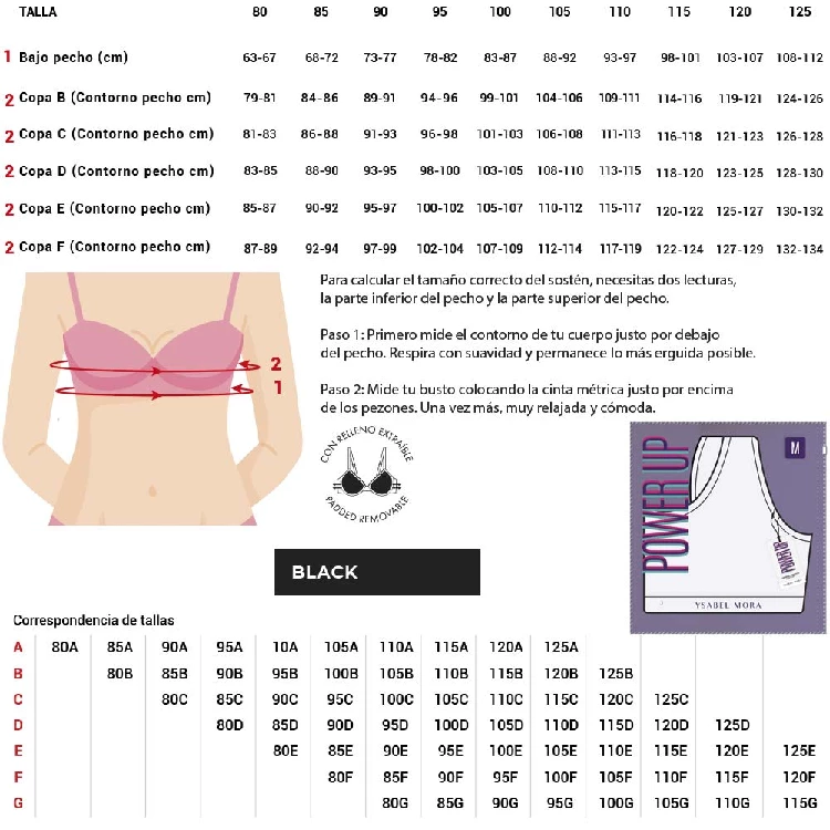 Sujetador mujer Ysabel Mora 70944 DeportivoModelo deportivo de sujeción baja con relleno extraíble.Presentación: Caja individualColor: NegroTallas: S, M, L, XL y XXLComposición: 80% Poliéster y 20% ElastanoCombina con: Leggings Deportivo YM70921 y Leggings Deportivo YM70925
