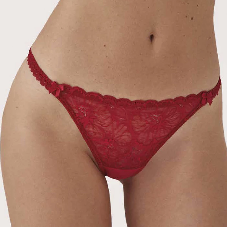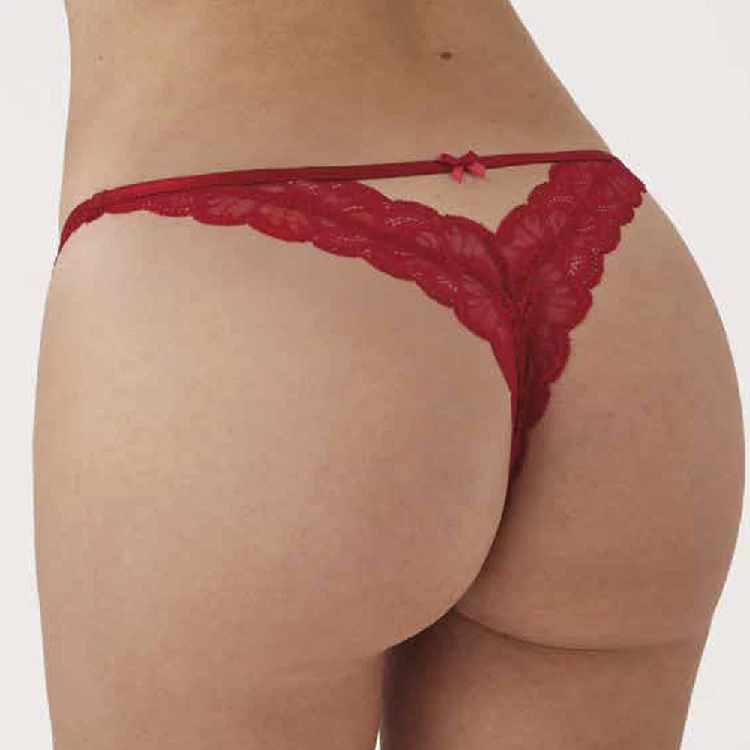 Tanga mujer Promise PCZ14953 NavidadModelo con un bonito encaje y lazos decorativos.Perfecto para regalar.Presentación: Caja individualColor: RojoTallas: S, M y LComposición: