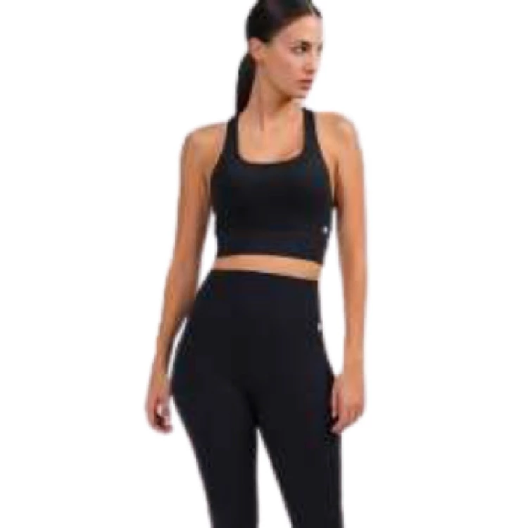 Top mujer Ras de Mar 25509 DeportivoModelo deportivo de tejido compresivo y transpirable, con copas de relleno ligero extraíbles y espalda estilo nadador para alto impacto.Presentación: Pack individualColor: NegroTallas: S, M, L y XLComposición: 75% Poliamida y 25% elastano
