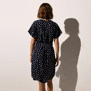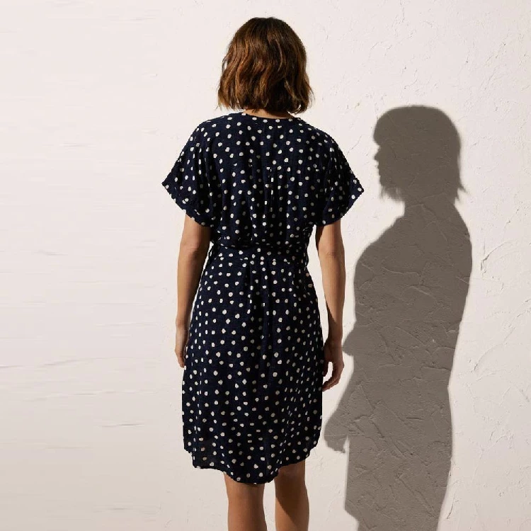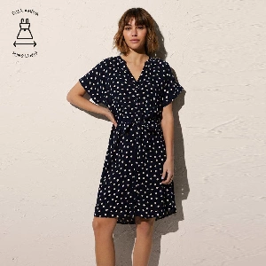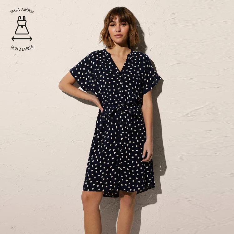 Vestido mujer Ysabel Mora YM86027Modelo por encima de las rodillas, tiene un tallaje más amplio y estampado completo a puntos.Presentación: Caja individual de la marcaColor: MarinoTallas: S, M, L y XLComposición: 100% viscosa