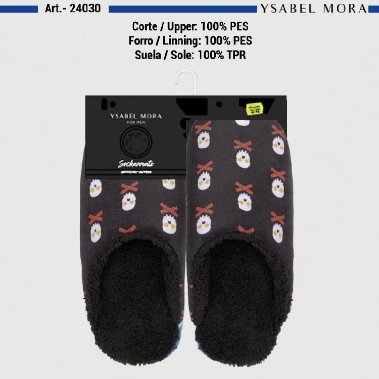 Zapatilla de hombre Ysabel Mora 24030 Otoño-inviernoModelo de casa hombre de la colección Sockarrats. Divertidas, personales y muy coloristas, estas zapatillas llenas de vitalidad para el día a día transmitiendo energía a cada paso. Interior de borrego, son muy cómodas y suaves. Inspiración con manos rockeras con bases lisas.Presentación: IndividualTallas: 41-42, 43-44 y 45-46Colores: ÚnicoComposición: 100% Poliéster